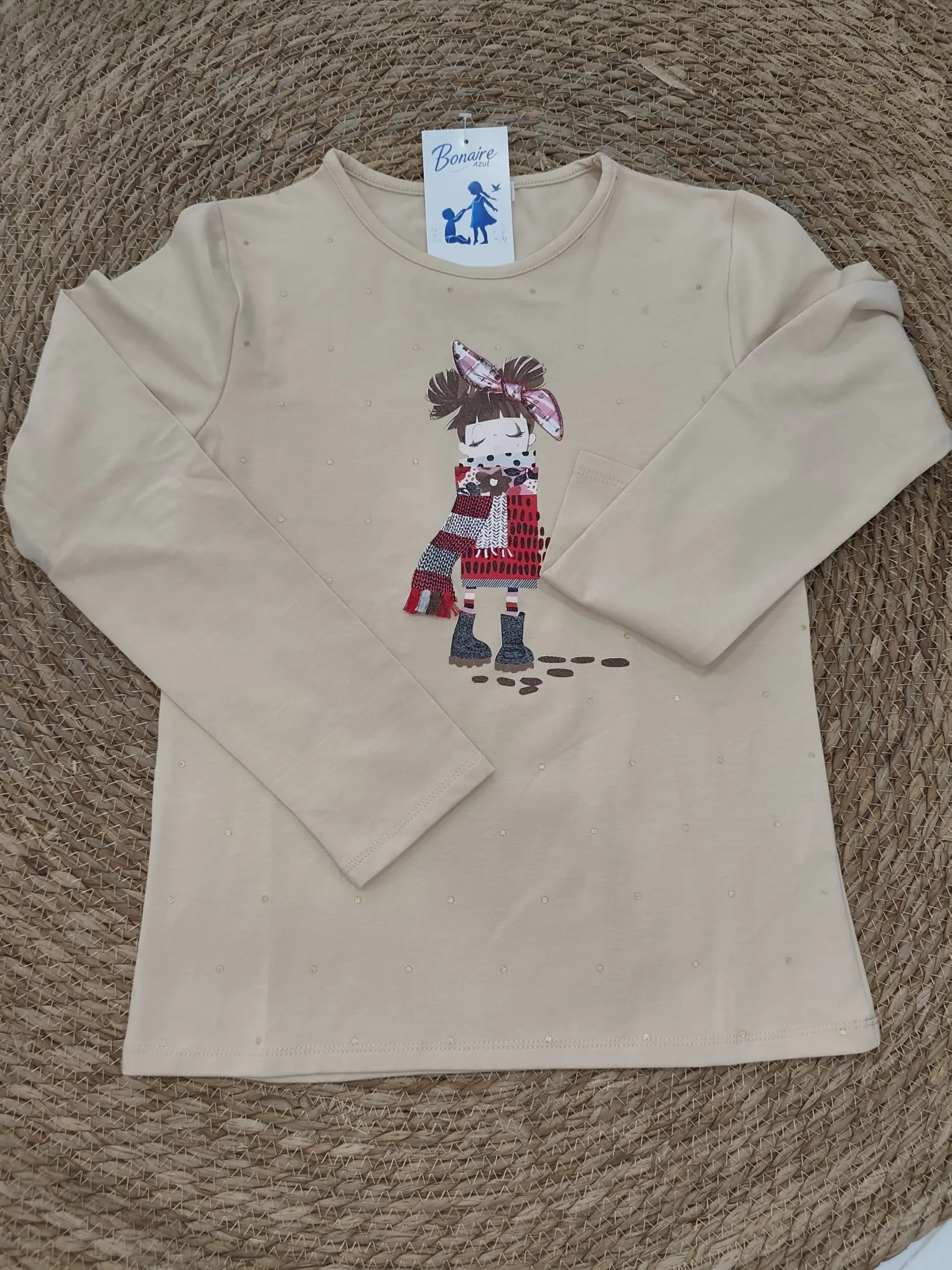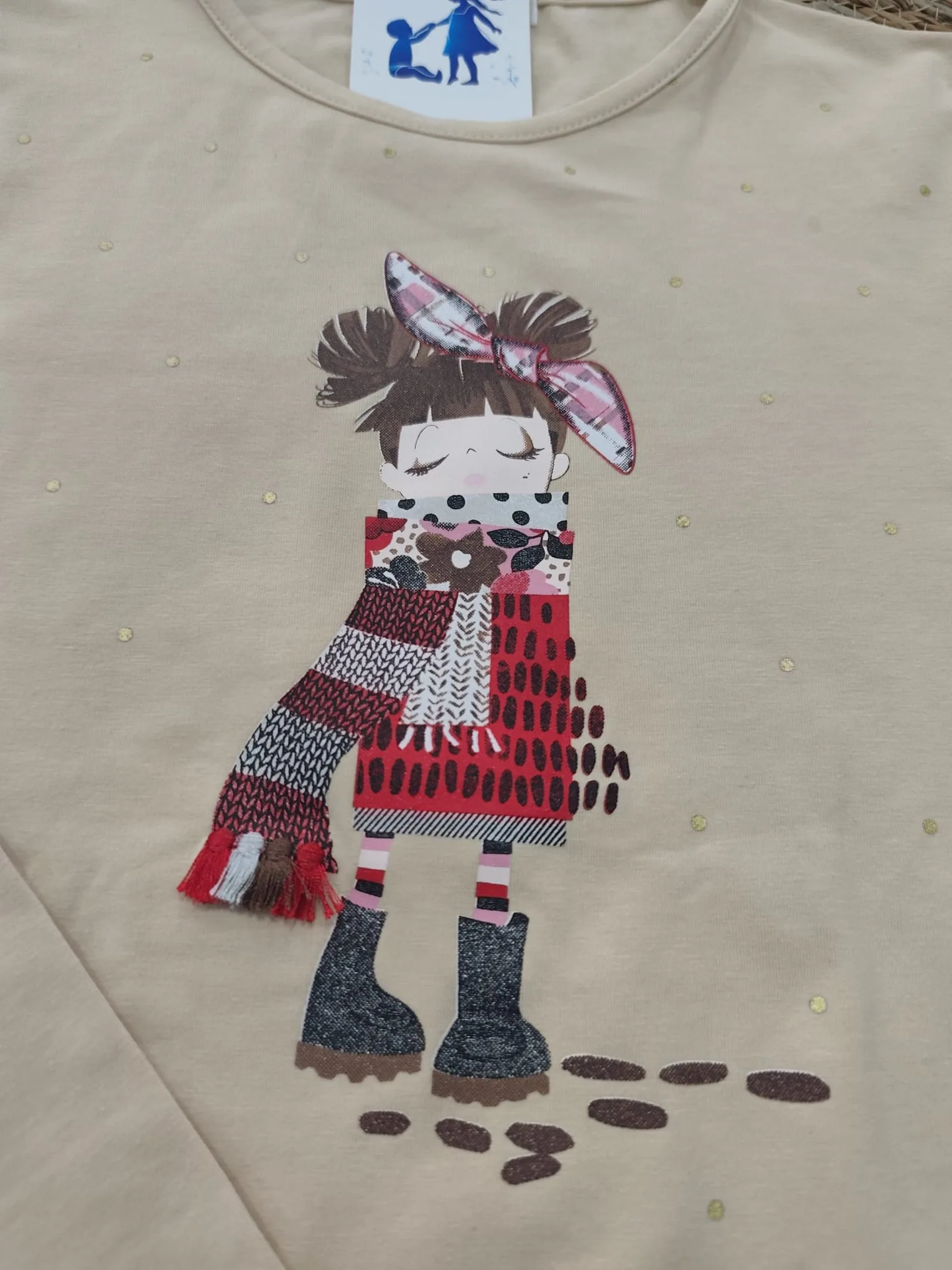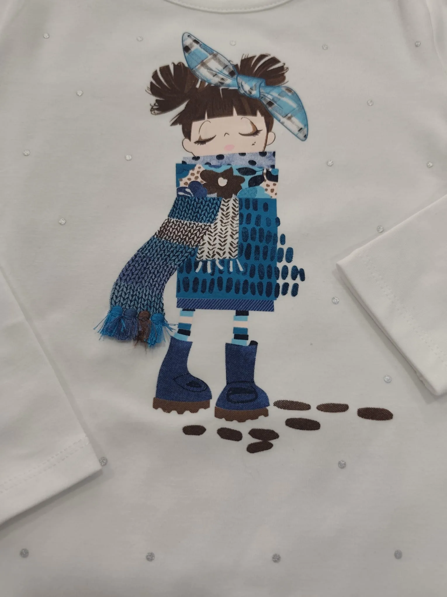 Camiseta niña afelpada con dibujo de niña en la delantera