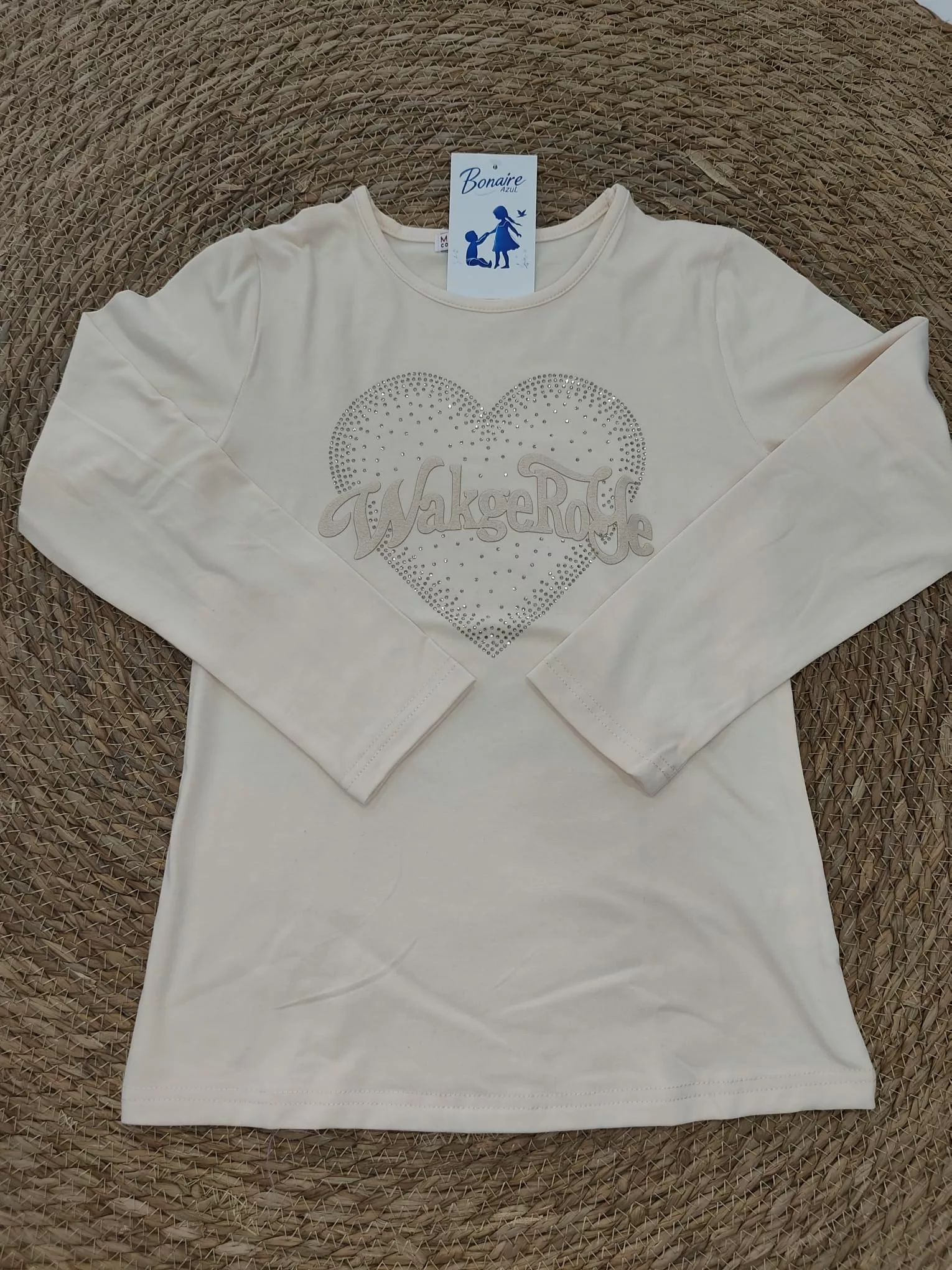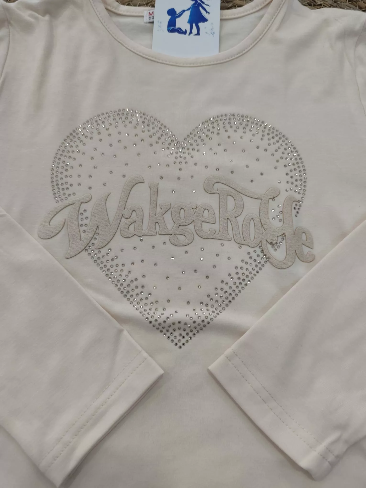 Camiseta niña afelpada con letras en relieve y corazón de brillantes