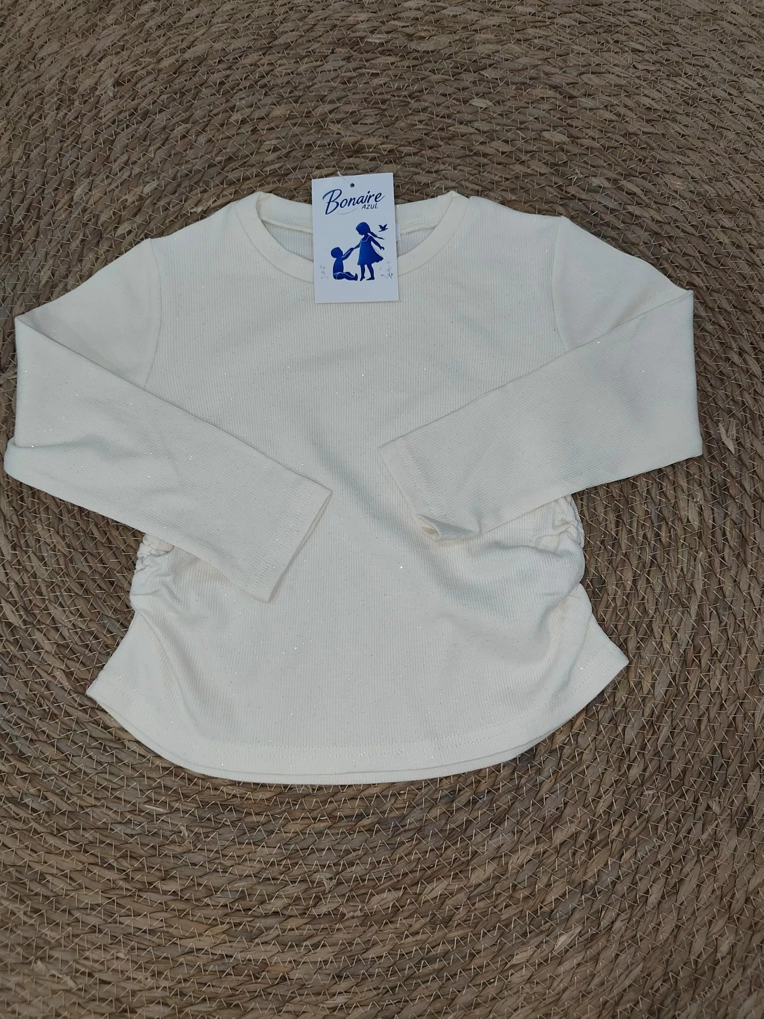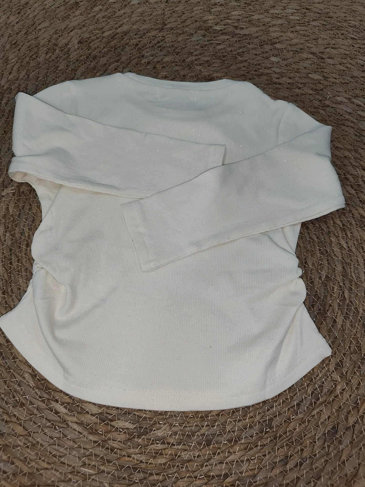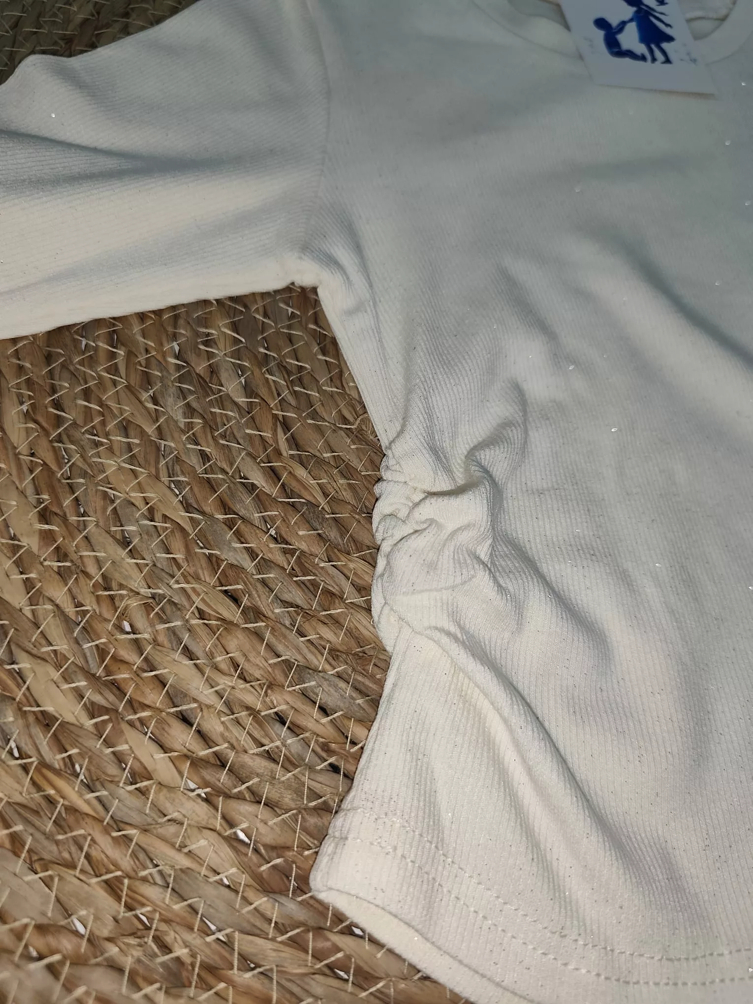 Camiseta canalé y brillitos, con un poco de felpa interior, encogidos laterales.