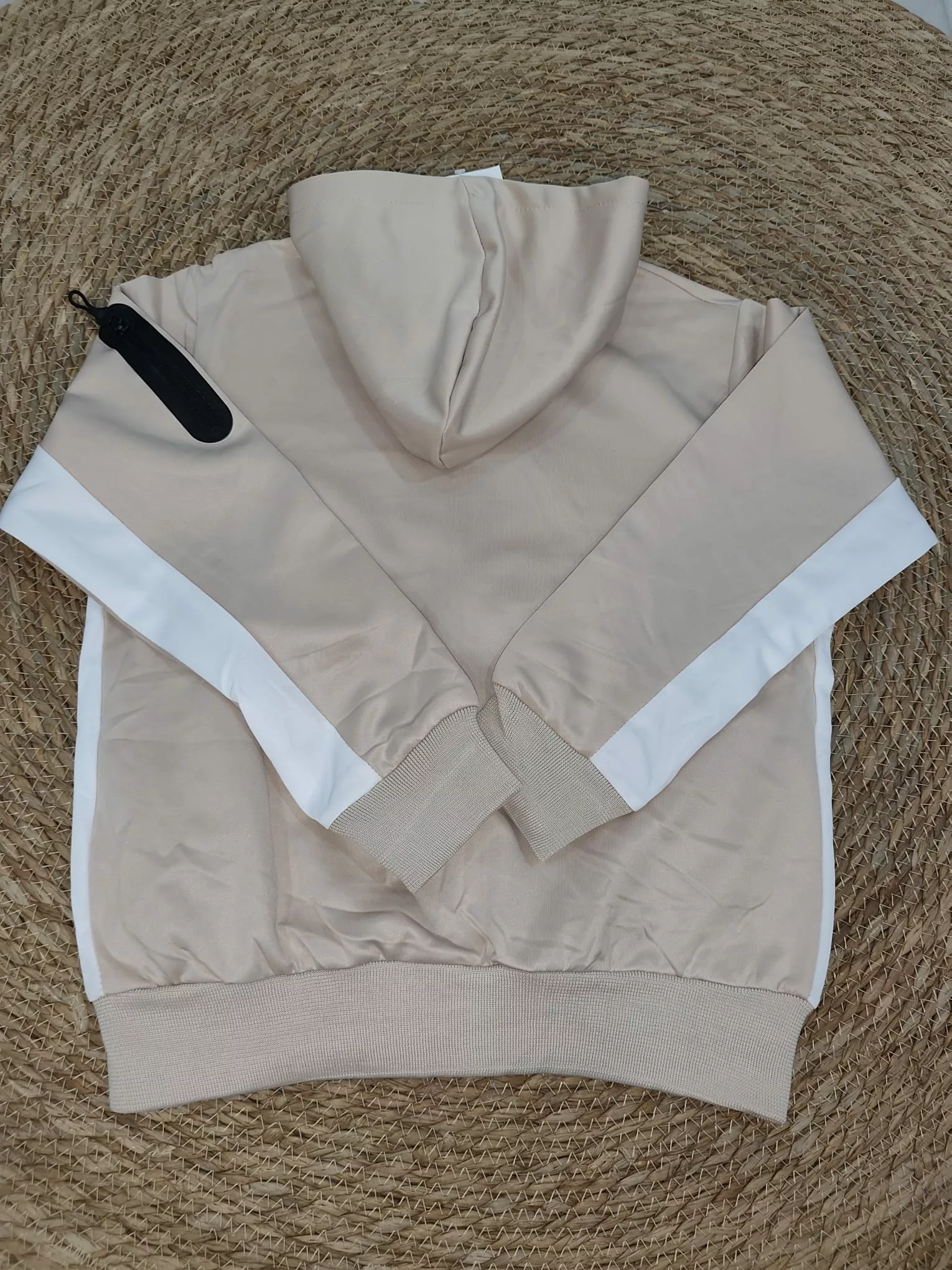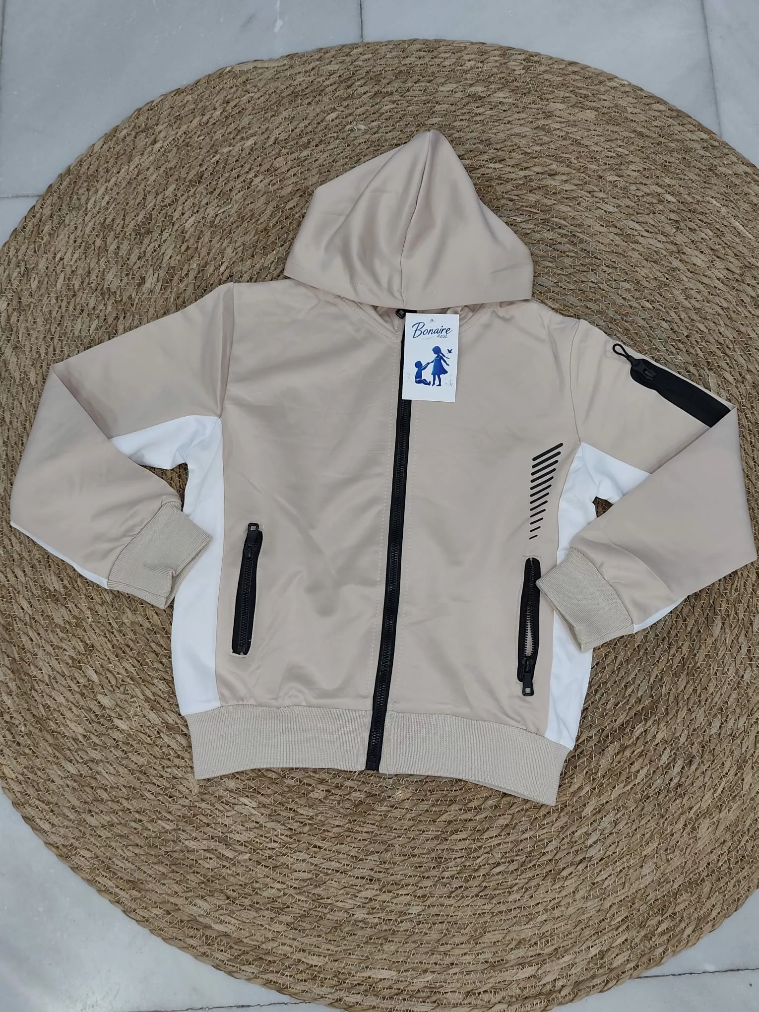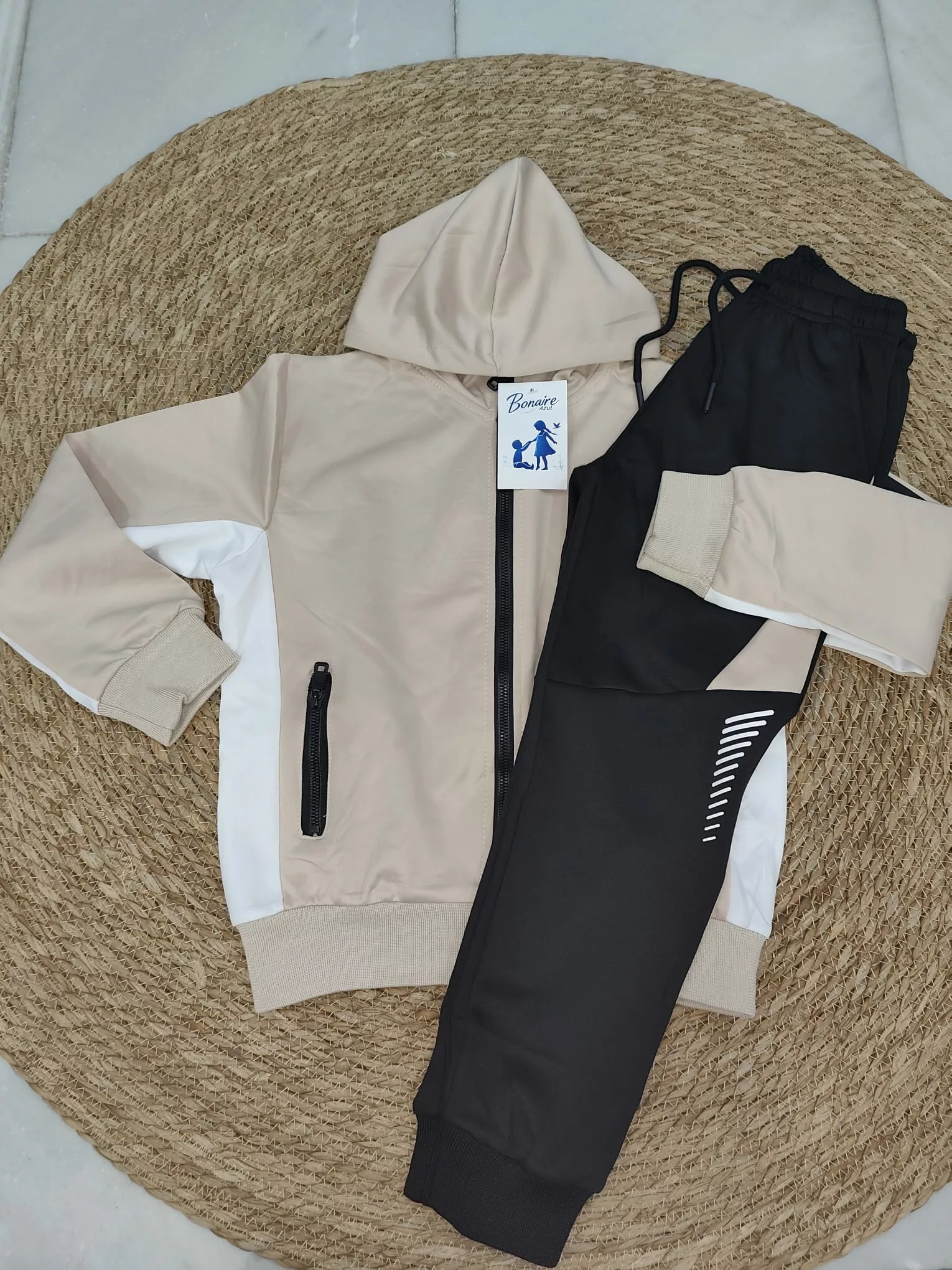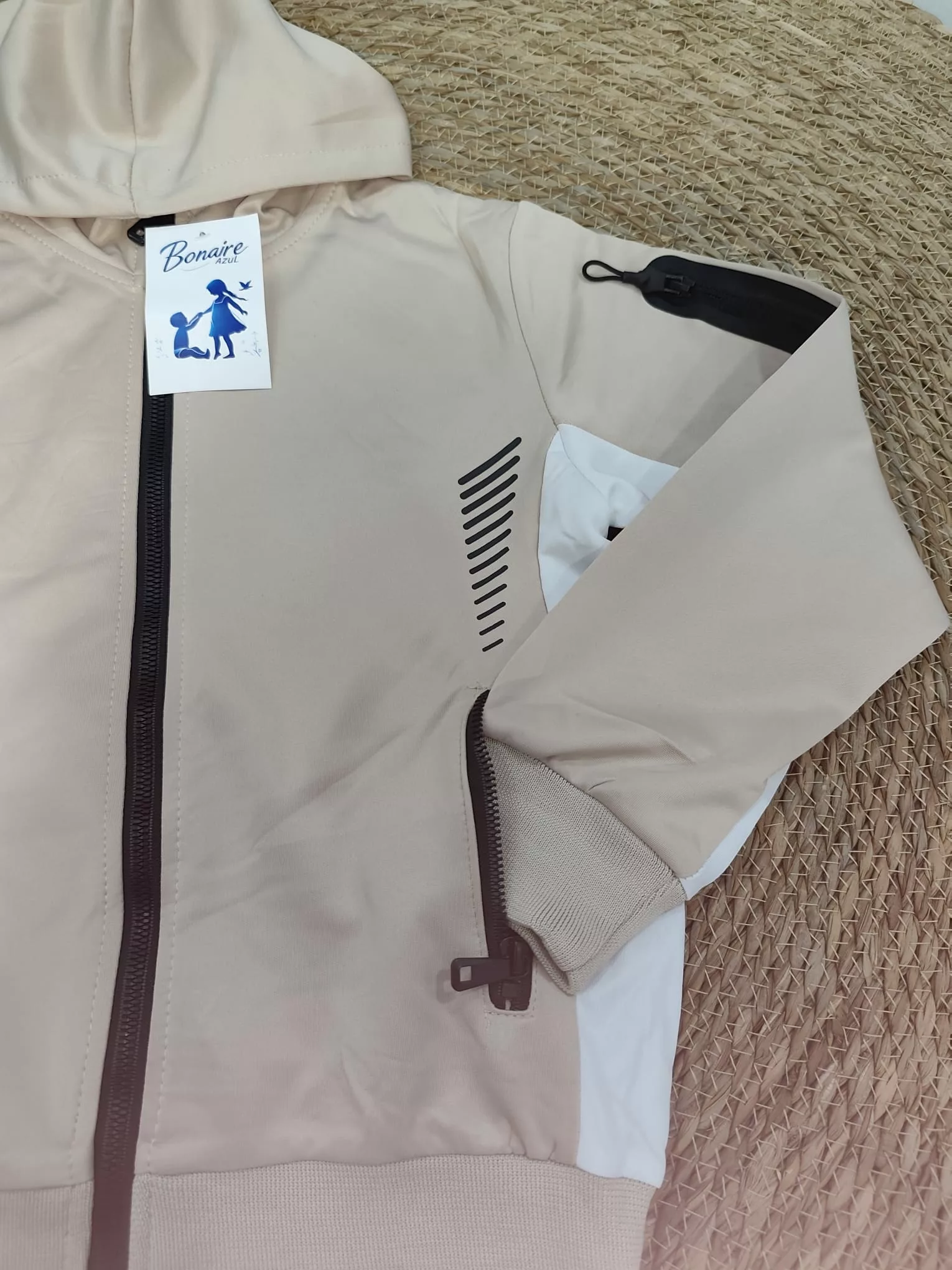 Chándal de niño. Sudadera con cremallera y gorro. Pt con cintura elástica y cordón ajustable.puños en los bajos