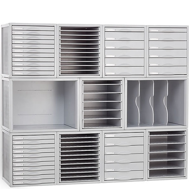 • Archiva todo lo que necesitas en los módulos con 3, 5, 6, 9 y 11 cajones o, si lo prefieres, 5, 6, 9 y 11 bandejas para formatos DIN A4, folio, fundas y subcarpetas.