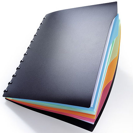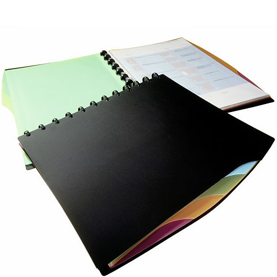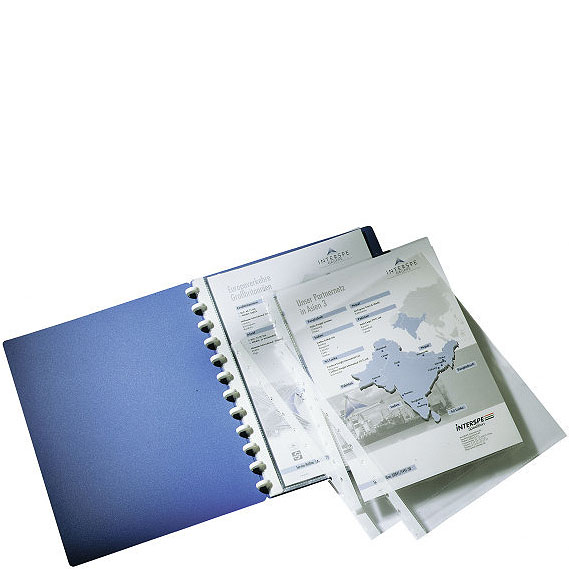 • Carpeta de presentación de atractivo diseño con 20 fundas intercambiables DIN-A4 y 4 separadores de color.