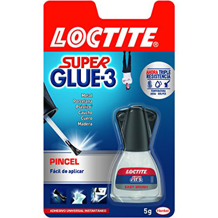 ¿Tienes el tacón de algún zapato roto y crees que es imposible arreglarlo? ¿No sabes qué adhesivo utilizar paa reparar el soporte de un marco de fotos? El pegamento instantáneo Loctite Super Glue-3 Pincel es la solución a tus problemas, ya que garantiza resultados limpios, duraderos y precisos, y una cobertura excepcional de las superficies. Gracias a su revolucionario pincel y a su fórmula antigoteo, este pegamento universal es muy fácil de aplicar. Para ofrecer uniones extrafuertes e instantáneas, este pegamento Loctite se seca en 3 segundos y es resistente al agua y al lavavajillas, a los golpes y a las temperaturas extremas (de -50 ºC a 120 ºC). Además, al ser multimaterial, sirve para pegar con una fuerza de unión máxima metal, porcelana, plástico*, caucho, cuero*, madera o mármol. Para facilitar aún más su uso, este adhesivo viene en un bote muy estable que incluye un tapón de fácil apertura.