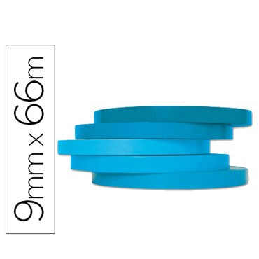 Rollo de cinta de color azul para máquina precintadora de bolsas. Medidas: 66 m. x 9 mm.