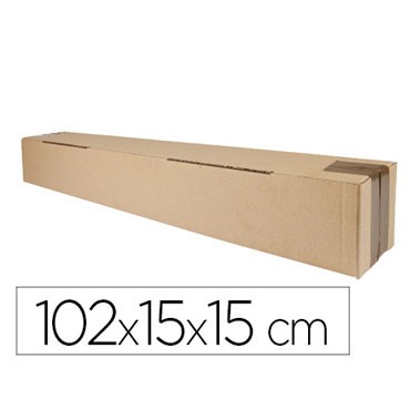 Caja de envío fabricada en cartón de canal sencillo de alta resistencia. Medidas: 1020 x 150 x 150 mm.