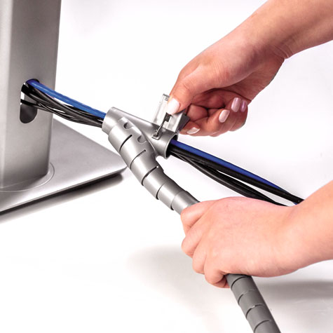 - La solución más sencilla para el desorden y el mal aspecto que producen los cables. Con una acción parecida a una cremallera, realizada con la exclusiva herramienta suministrada, todos los cables se ordenarán en unos segundos