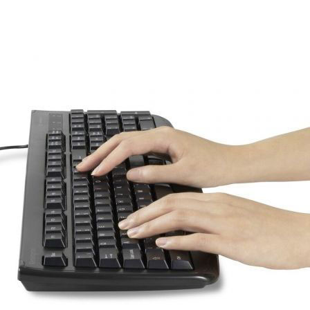 Compatible con Windows 95/98/NT/2000/XP/Vista/7/8, disposición de teclado de 104 teclas, tamaño estándar, color negro, conexión USB.
