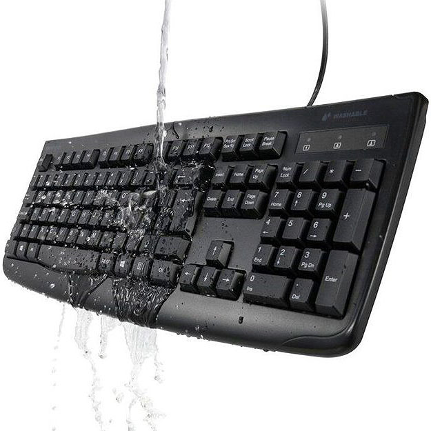 Una fina membrana protege los componentes internos y le permite sumergir completamente el teclado en agua para limpiarlo de restos de comida y bebida o cualquier otra sustancia no deseada (nota: el conector USB no puede mojarse)