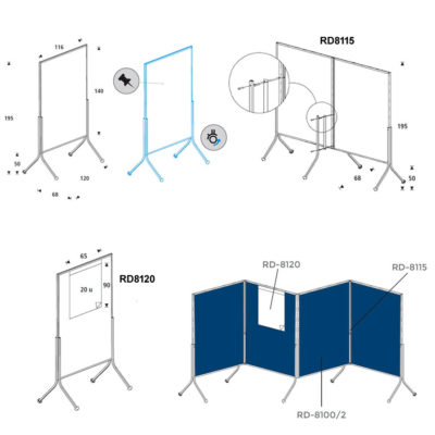 • Permite múltiples configuraciones gracias a sus piezas de unión (ref. RD8115 no incluido), y al bloque de papel de 20 hojas de 70gr con sistema de fijación (RD8120 no incluido).