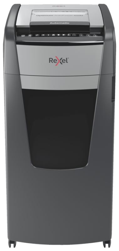 La destructora de microcorte Optimum AutoFeed 600M tritura automáticamente hasta 600 hojas de papel A4 (80 grs.) a la vez, en micro partículas P-5 (2×15 mm). Esta destructora de alimentación automática es una trituradora de oficina sofisticada, con una papelera extraíble de 110 litros. No es necesario alimentar manualmente el papel, ni quitar grapas y clips de papel primero, esta destructora de papel automática hará todo el trabajo por ti.