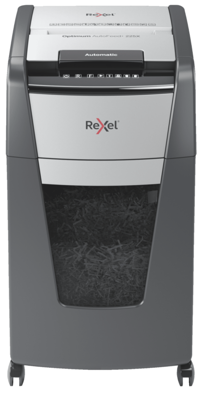 La destructora de microcorte Optimum AutoFeed 750M tritura automáticamente hasta 750 hojas de papel A4 (80 grs.) a la vez, en micro partículas P-5 (2×15 mm). Esta destructora de alimentación automática es una trituradora de oficina sofisticada, con una papelera extraíble de 140 litros. No es necesario alimentar manualmente el papel, ni quitar grapas y clips de papel primero, esta destructora de papel automática hará todo el trabajo por ti.