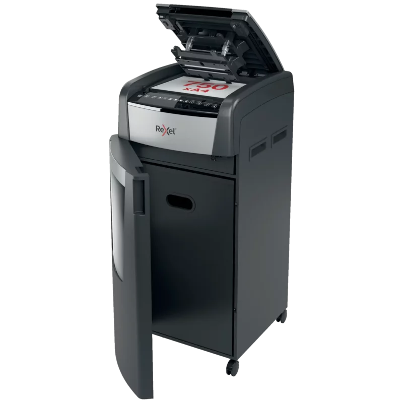 La destructora de microcorte Optimum AutoFeed 750M tritura automáticamente hasta 750 hojas de papel A4 (80 grs.) a la vez, en micro partículas P-5 (2×15 mm). Esta destructora de alimentación automática es una trituradora de oficina sofisticada, con una papelera extraíble de 140 litros. No es necesario alimentar manualmente el papel, ni quitar grapas y clips de papel primero, esta destructora de papel automática hará todo el trabajo por ti.