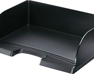 Bandeja portadocumentos de plástico de color azul mar translúcido 100% reciclable apilable en 3 posiciones distintas. Medidas: 320 x 258 x 65 mm
