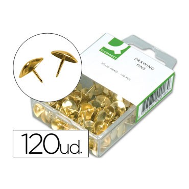 Caja de 120 chinchetas de color oro.