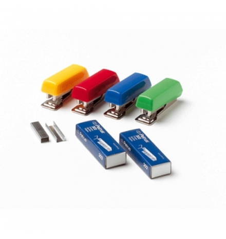 Grapadora escolar Bambina. Metálica de 5 cm. de longitud y con una capacidad de grapado de 5 hojas. Se suministra con una caja de grapas modelo 202