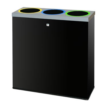 Papelera para reciclaje modelo P-77 metálica de color negro con remate superior desmontable y 3 cubetas interiores extraíbles. Medidas: 66 x 22 x 70 cm.