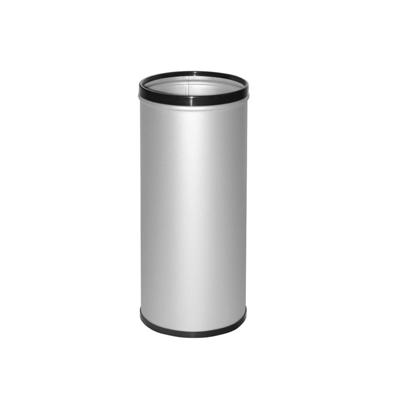 Paragüero modelo G-22 metálico de color gris plata con embellecedores de color negro y recoge-aguas en el interior. Medidas: ø21,5 x 51 cm.