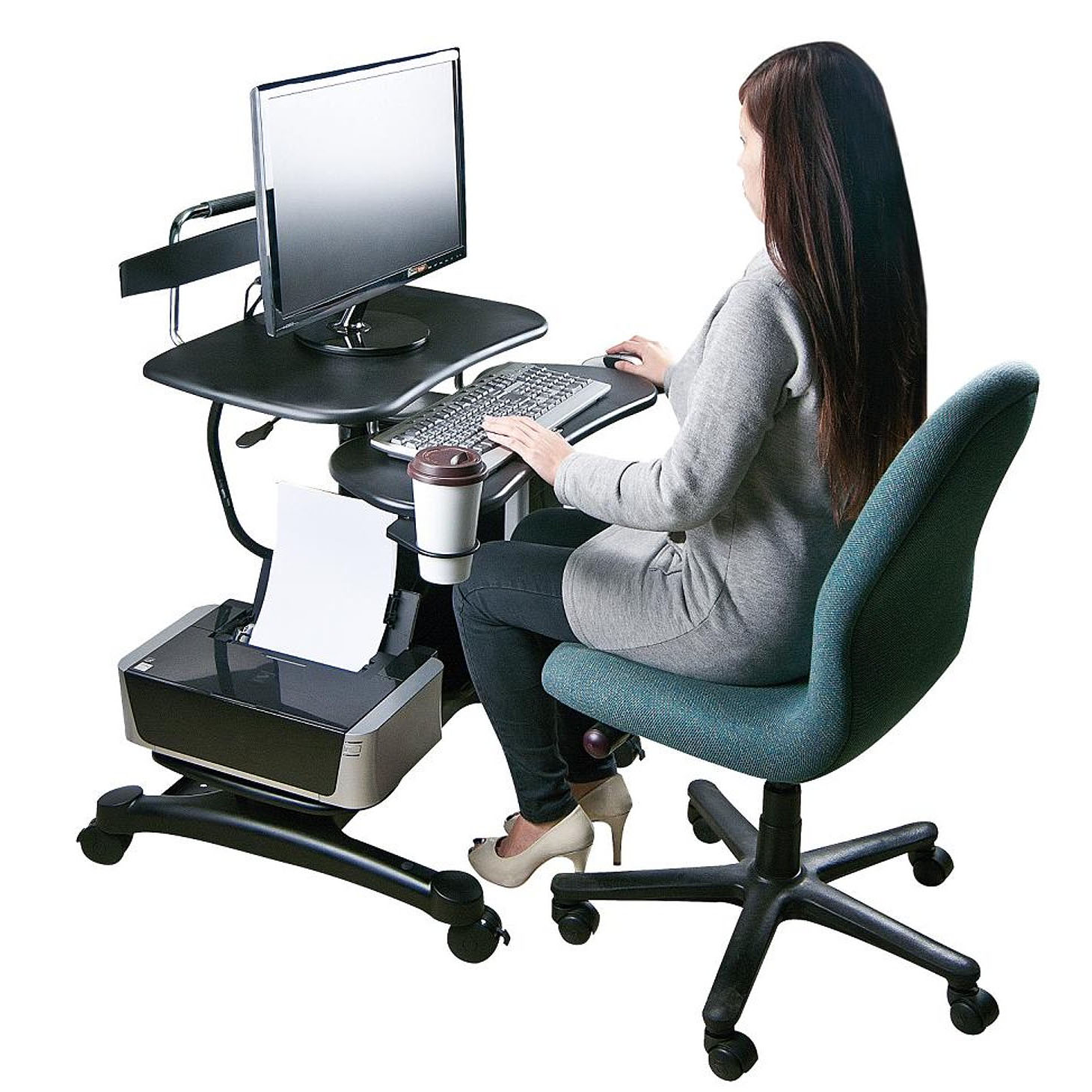 - Espacio para bandeja para teclado de 42 x 28,1 cm. =Incluye un organizador de cables