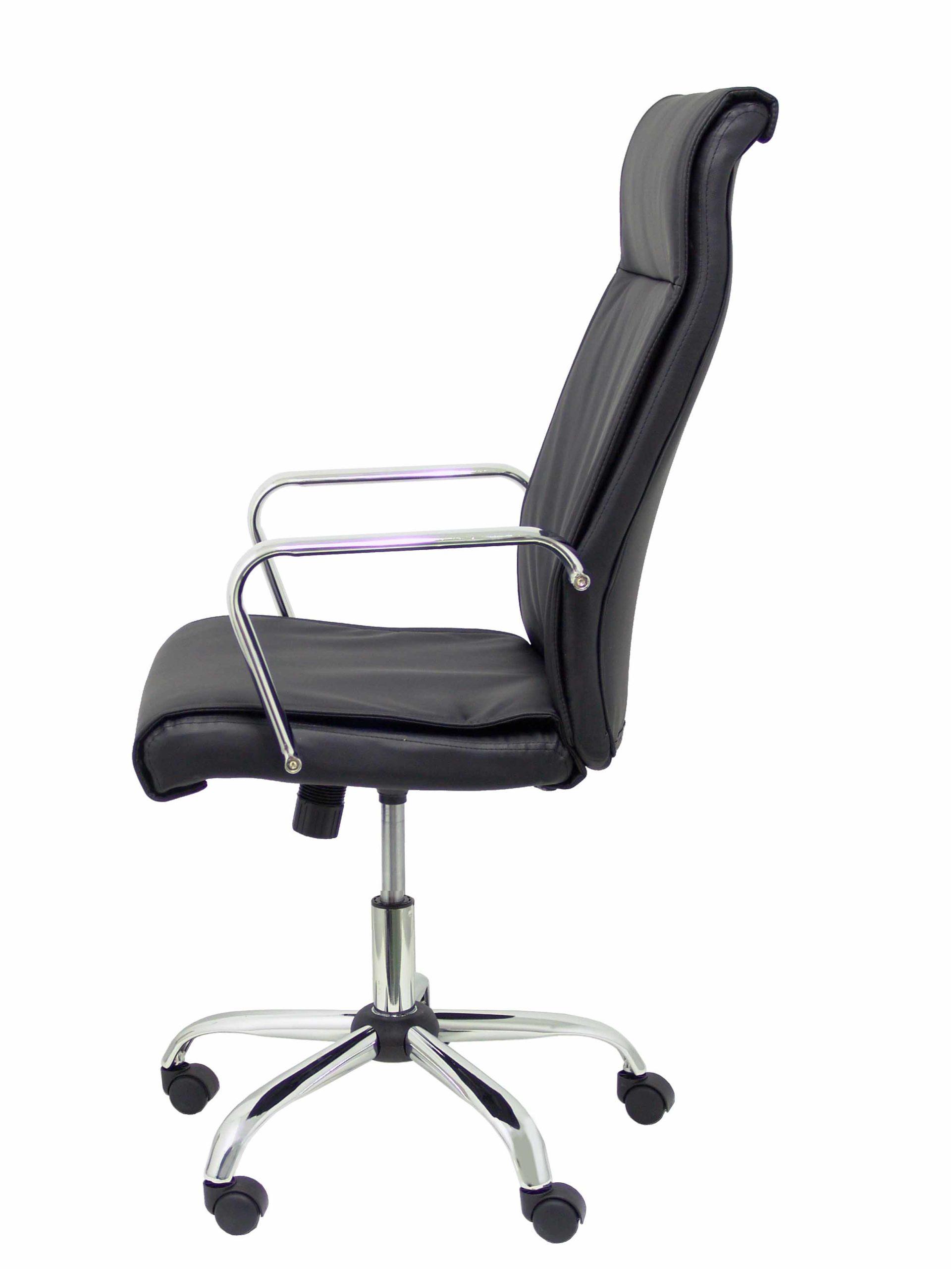 Asiento  respaldo tapizados en tejido símil piel negro.