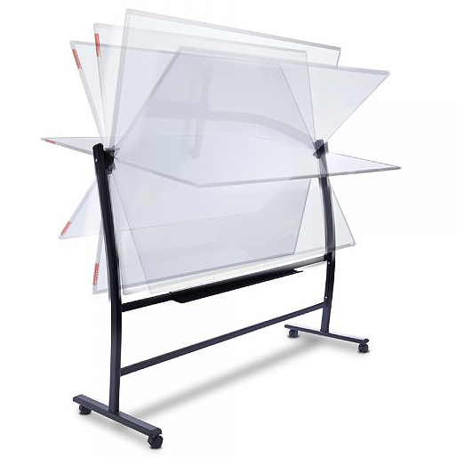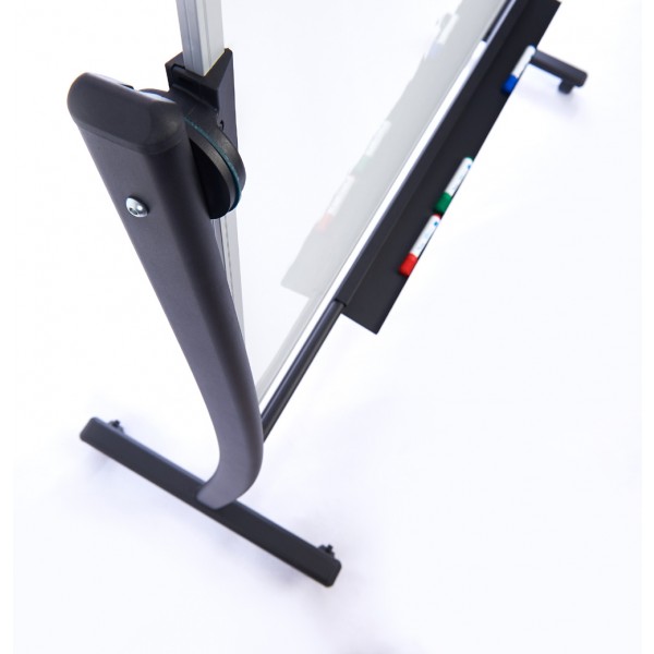 Sistema patentado de rotación – FREE ROTATION™ – que permite el giro y el bloqueo de la pizarra sin necesidad de accionar ninguna palanca o pomo, aportando mayor seguridad en el giro y evitando cualquier movimiento de oscilación.