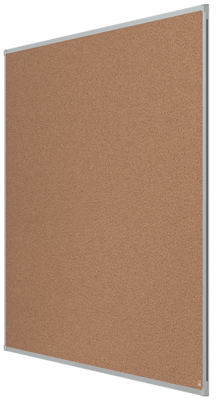 Tablero de anuncios de corcho con un acabado de aluminio anodizado y fijado a la pared mediante un montaje en las esquinas. Tablero de anuncios con una excelente superficie de corcho para fijar y mostrar tus avisos.