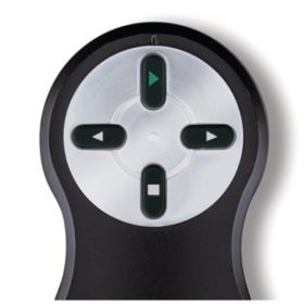 - Los botones hacia delante y hacia atrás mueven sin problemas las diapositivas de presentaciones PowerPoint o Keynote, además de la opción de pantalla a negro y un botón para activar el puntero láser