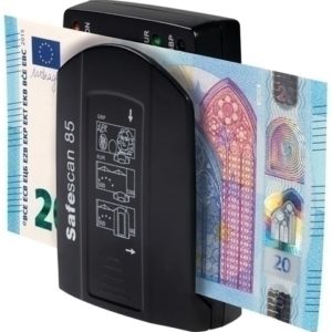 Detector y contador de billetes falsos con señalizacion bueno/malo automática en el que se puede seleccionar la entrada y salida del billete por la parte frontal o trasera y cuenta numero y valor. Dispone de puerto USB para actualizaciones de sof