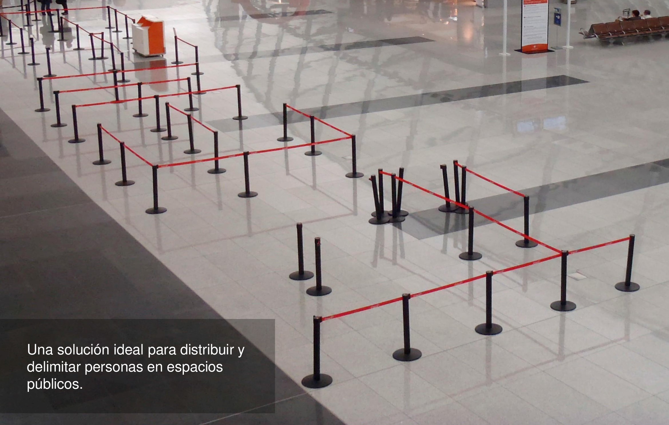 Juego de 2 unidades de poste separador negro de 95 cm. y de base de 35 cm. con cinta retráctil disponible en rojo y negro , cinta extensible de 4.8 cm x 200 cm.